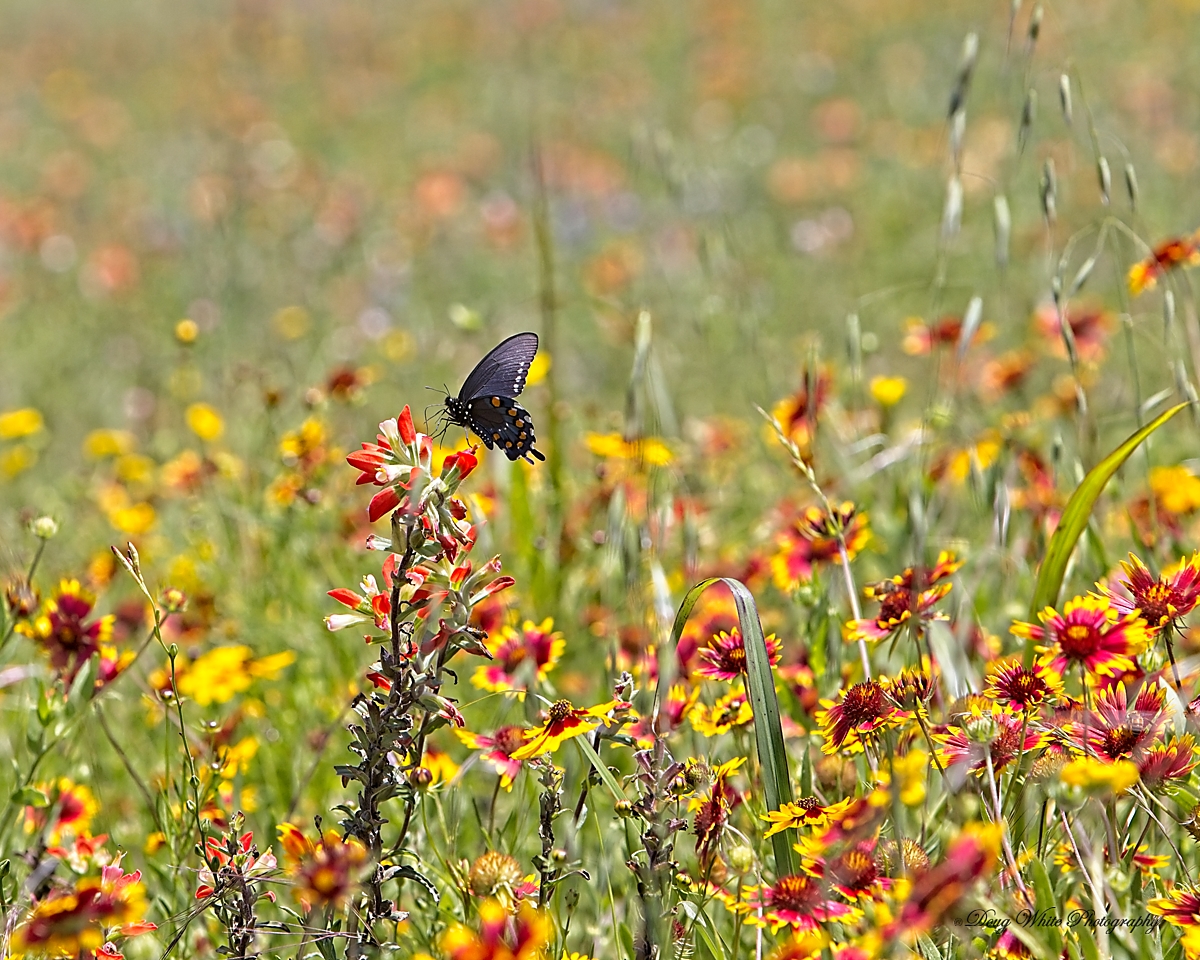 Another photo of the Black Swallowtail on an Indian Paintbrush - this time in a nice profile view. The photos are essentially the same as shared yesterday - initial crop followed by a very tight crop. Again, the detail is surprising from this distance and cropping. You can see its proboscis extending into the flower. This butterfly was in really good shape with its wings looking fully intact. The third photo is just the tight crop of a third shot (hopefully not getting too repetitive). I'm guessing the wind knocked him off his perch and down into the flower a bit while he was eating.